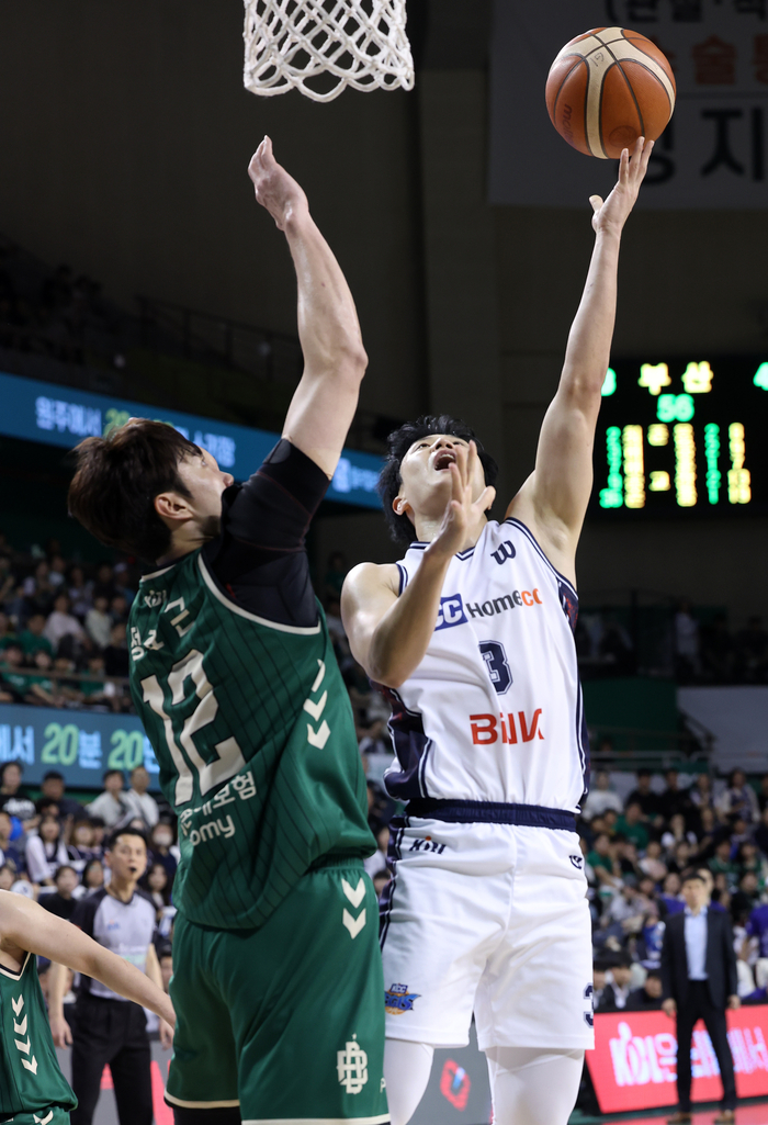 2쿼터 KCC 숀 롱 3점슛과 덩크, 허웅 속공과 허훈 3점포가 터졌다. 7분31초 28-27 역전이다. 이후 엎치락뒤치락이다. 33-33 상황에서 DB가 엘런슨과 이선 알바노를 앞세워 리드를 다시 잡았다. 1분여 남기고 42-37이 됐다. 막판 송교창 연속 득점으로 KCC가 또 좁혔다. 45-43 DB 우위로 전반 종료다.