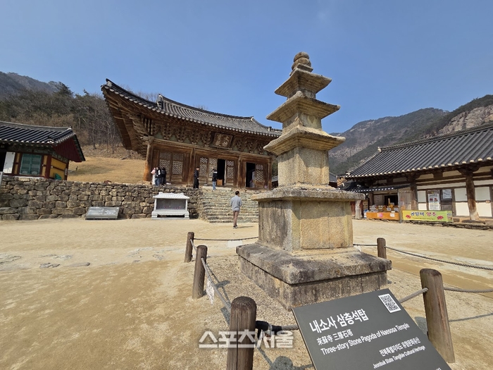 대웅보전에 다다르면 오랜 세월의 흔적이 묻어나는 건축미와 마주한다. 화려한 단청 대신 나무결이 그대로 드러난 대웅보전은 400년 비바람에 색이 바랜 결과다. “문헌이 없어 단청을 복원하지 못한 것이 오히려 내소사만의 독보적인 매력이 됐다”는 해설사의 말처럼, 인위적이지 않은 자연스러운 낡음이 발길을 오래 머물게 한다.