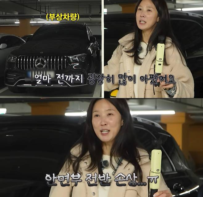 공개한 사고 차량은 전면부가 크게 파손된 상태였다. 이수경은 “페이스 리프팅을 한 수준이다. 전치 2달 정도?”라며 수리 기간이 길어졌다고 말했다. 이어 “두 달 넘게 (정비소에서) 나왔다”고 덧붙였다.