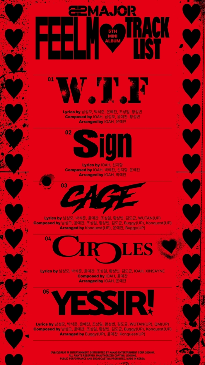 그룹 82메이저는 지난 16일 공식 SNS를 통해 미니 5집 ‘필름(FEELM)’ 트랙리스트 이미지를 공개했다.