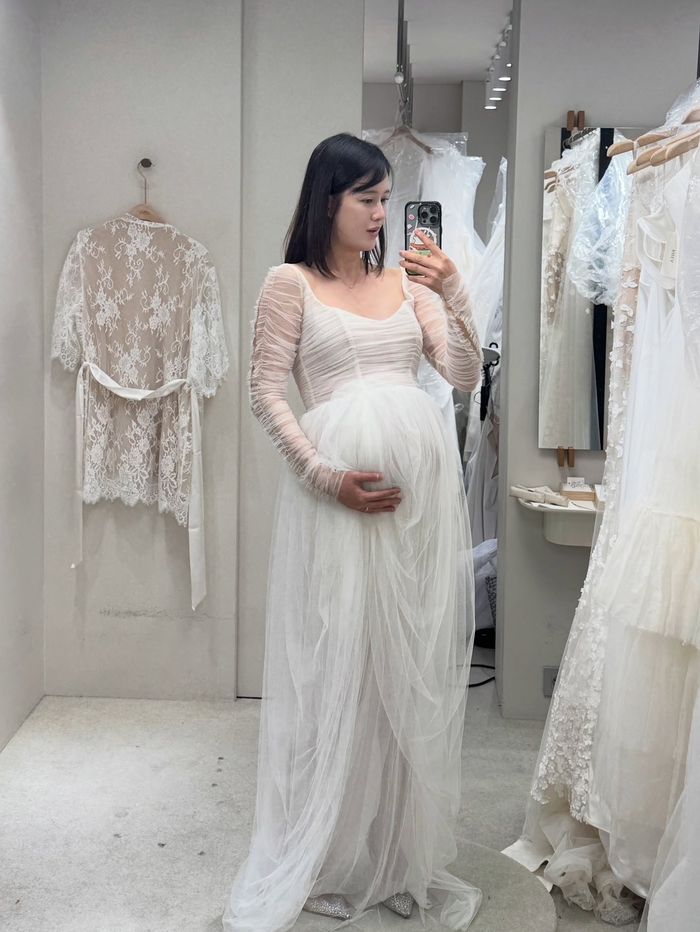 21일 남보라는 자신의 SNS를 통해 “만삭 드레스 피팅 보고 왔다”는 글과 함께 여러 장의 사진을 게재했다. 공개된 사진 속 남보라는 다양한 디자인의 웨딩드레스를 완벽하게 소화하며 예비 엄마의 설렘을 가득 전했다.