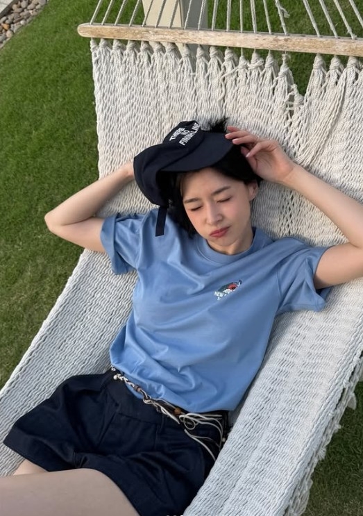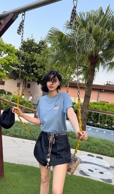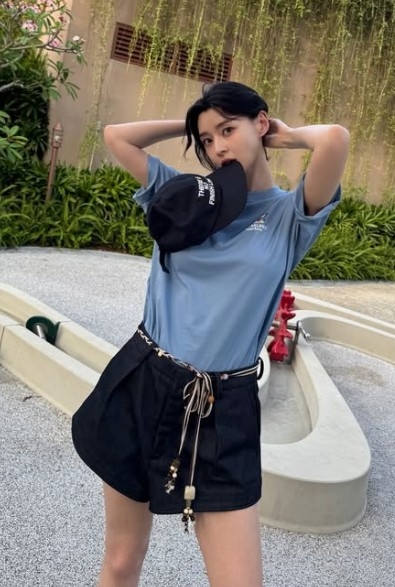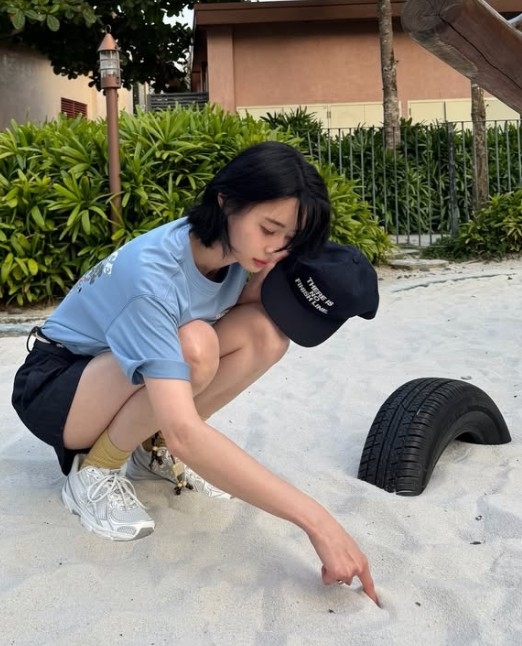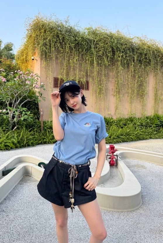 짧은 헤어와 미니멀한 메이크업은 전체 분위기를 가볍게 만든다. 휴양지 특유의 여유와 맞물리며 일상 자체가 화보처럼 완성된다.