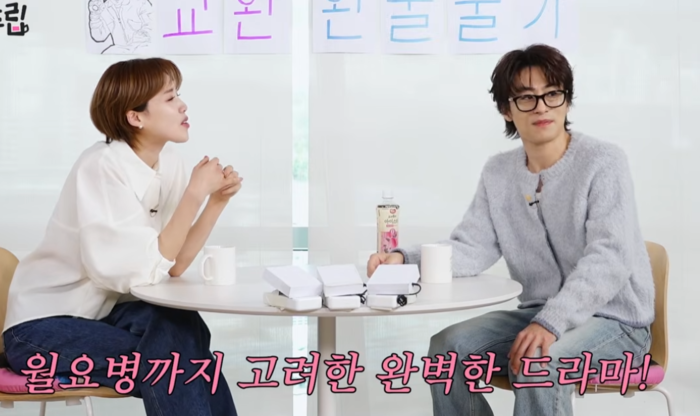 이어 구교환은 “주말드라마”라고 강조하며 “토요일 10시 40분, 일요일 10시 30분”이라고 구체적인 편성 시간까지 직접 언급해 웃음을 자아냈다. 특히 일요일 방송 시간이 10분 빠른 이유에 대해 “월요일은 (출근 때문에) 좀 스트레스 받으니까 10분 당겼다”고 설명하며 특유의 재치를 드러냈다.