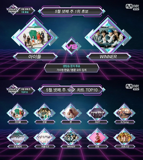 24일 방송된 엠넷 '엠카운트다운'에서는 5월 넷째주 1위 후보가 공개됐다.