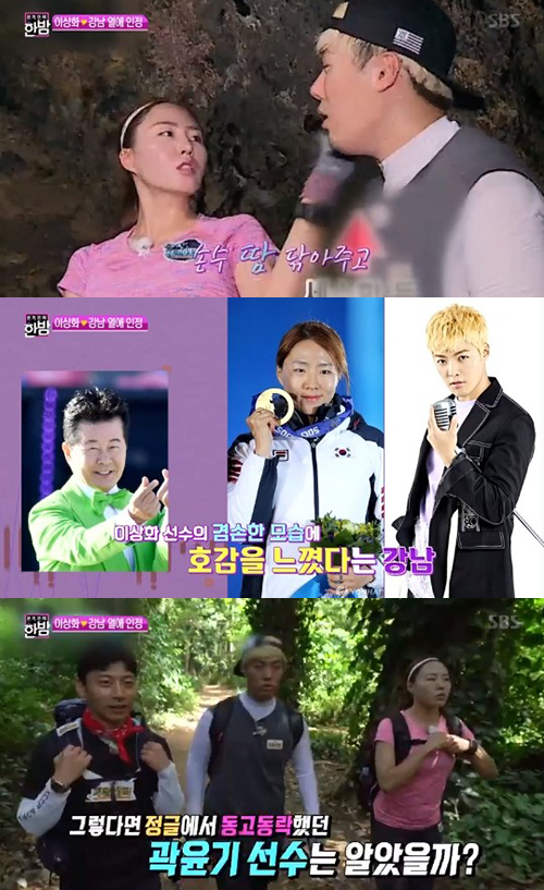 SBS '정글의 법칙'에 함께 출연했던 정윤기는 "둘이 좋아 죽는 게 확실하다. 통화를 해보면 이상화 누나 목소리 톤이 달라졌다"며 "강남 형이 재밌지만 속이 엄청 깊다. 기댈 부분들이 많은 것 같다"고 전했다.